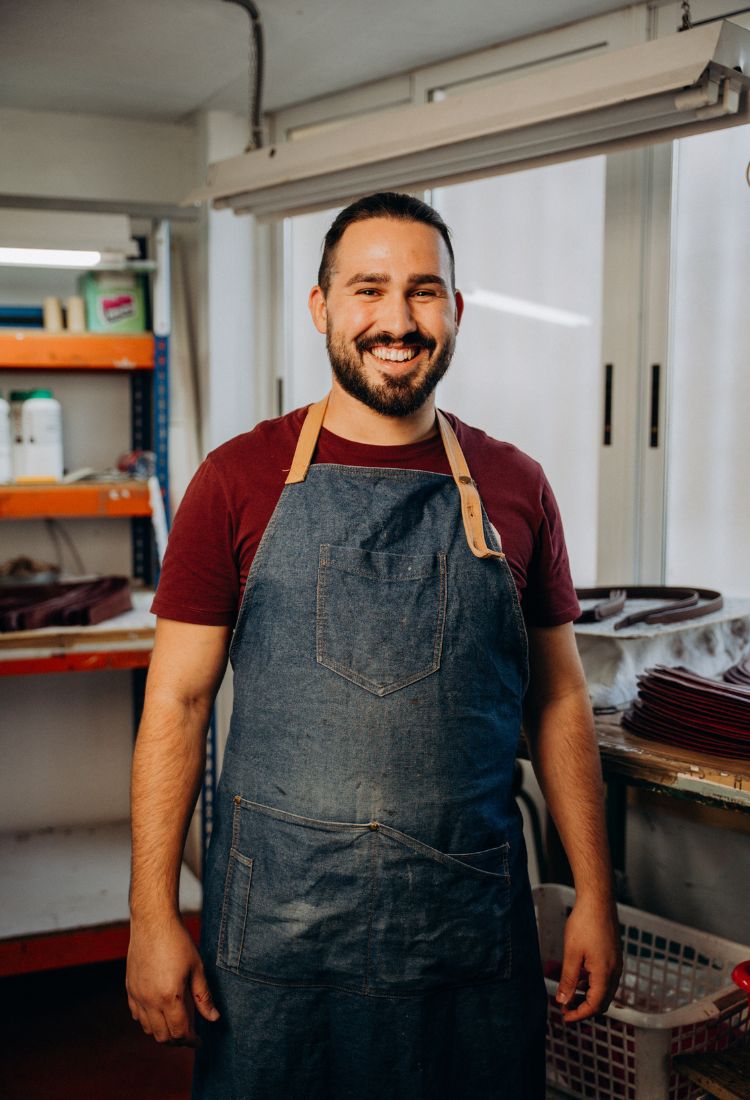 Dans l'atelier, il est responsable du polissage et de la teinture des sacs, un travail qui exige de la patience, de la précision et un grand sens du détail. Il aime savoir que chaque pièce qui passe entre ses mains acquiert sa propre vie et sa propre personnalité.