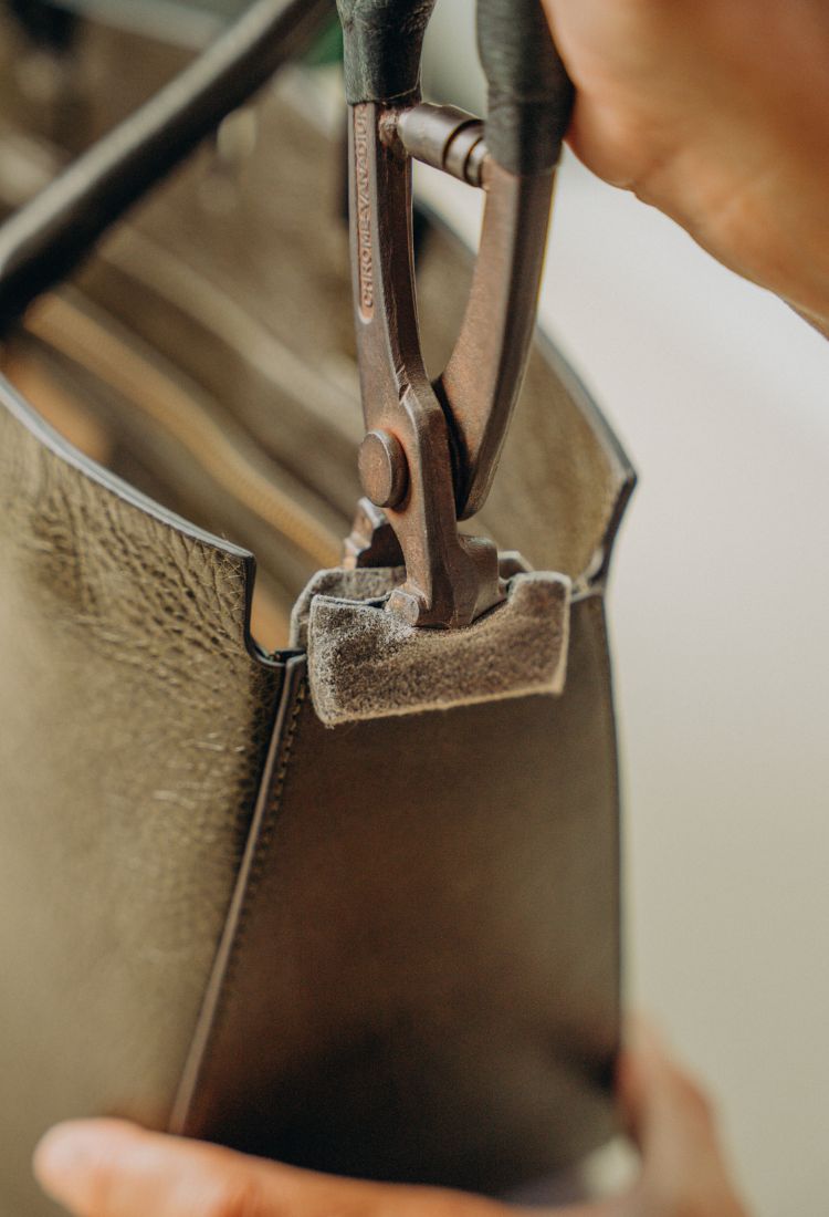 Grâce à ce type de tannage, le cuir conserve sa texture naturelle et développe une patine riche et unique au fil du temps, reflétant son authenticité et son évolution avec vous.