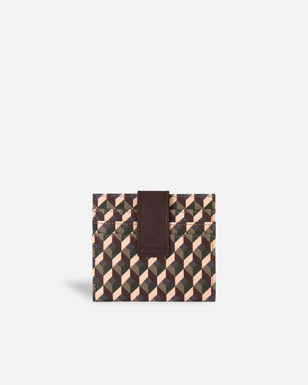 Lonbali Le nouveau portefeuille de taille moyenne avec impression est de forme carrée et se ferme à l'aide d'un bouton-pression. Il contient six cartes à l'intérieur et six cartes à l'extérieur. Il contient également une pochette supplémentaire pour les notes. Le logo de la marque est gravé sur la fermeture avant.