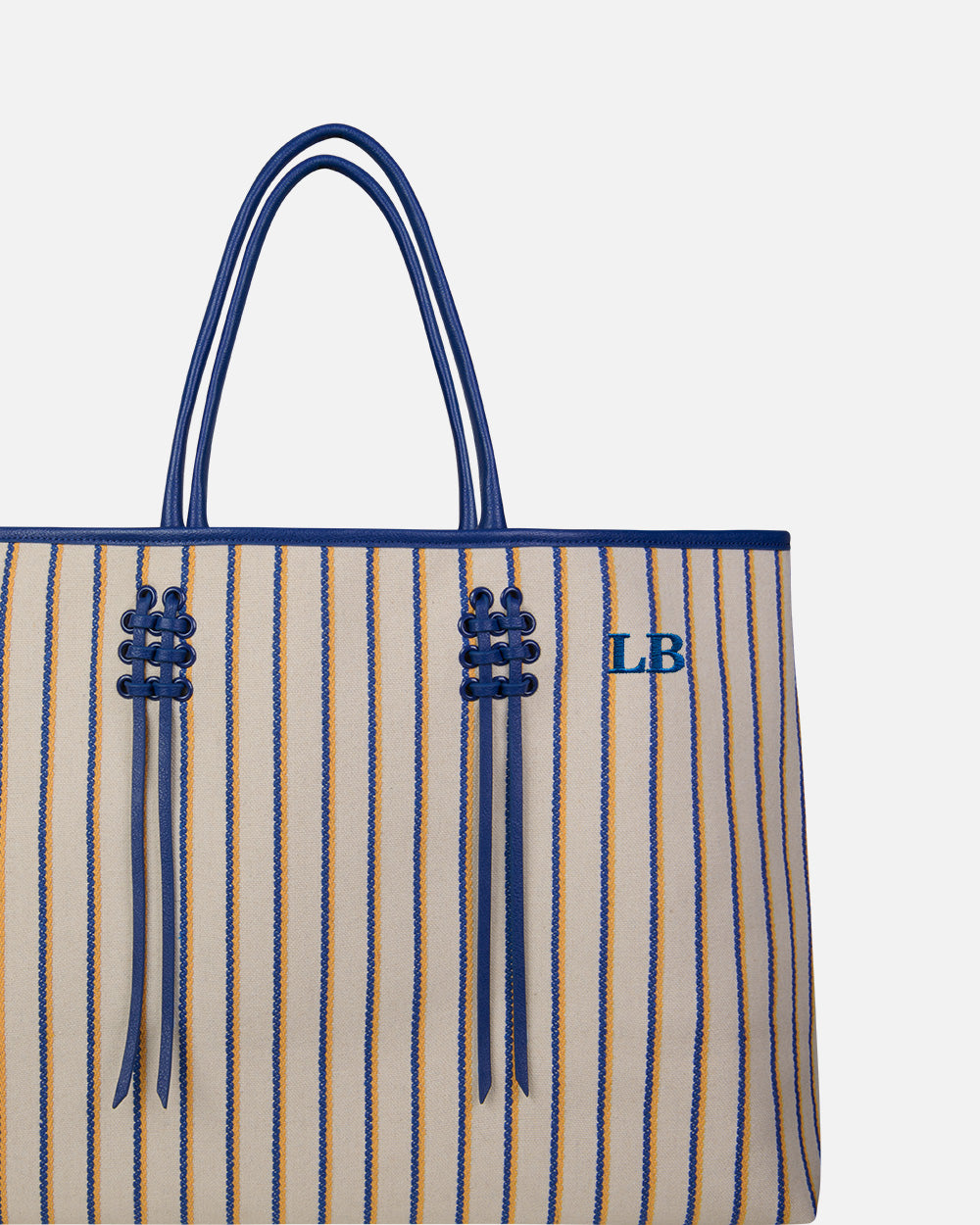 Le nouveau sac sac pour femmes Benat Basket est le choix parfait pour celles qui recherchent un accessoire d'été élégant. Ce sac spacieux se décline dans une palette classique de tons de terre avec des détails bleu marine et des rayures verticales. Il est parfait pour celles qui apprécient l'élégance et l'espace sans sacrifier le style.
