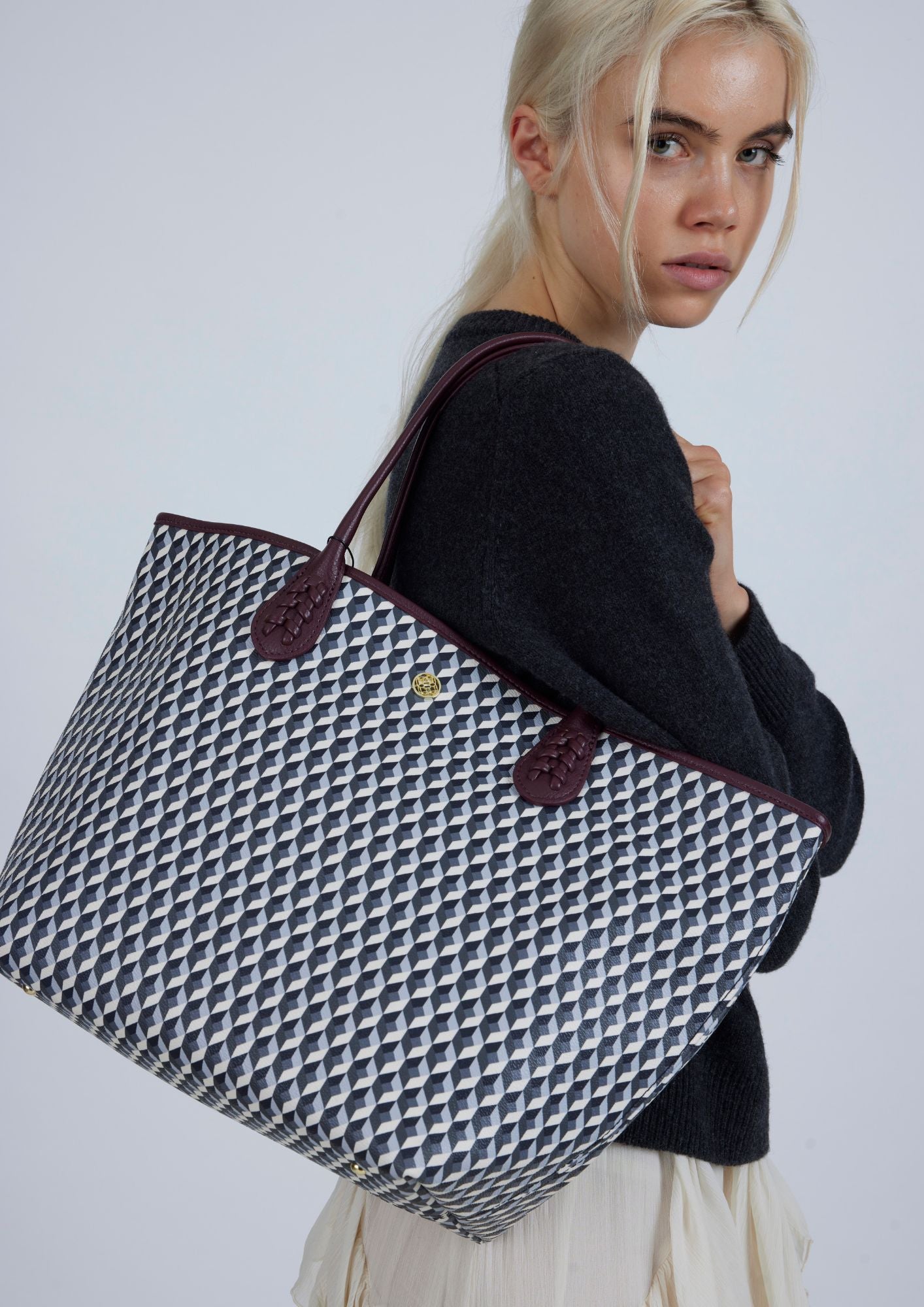 shoppingLes sacs imprimés de la ligne Bornse distinguent en étant le sac le plus emblématique de la ligne. Lonbali. Il a un design intemporel et est polyvalent, caractérisé par sa grande capacité. Il peut être porté à l'épaule ou en travers du corps grâce à sa bandoulière.