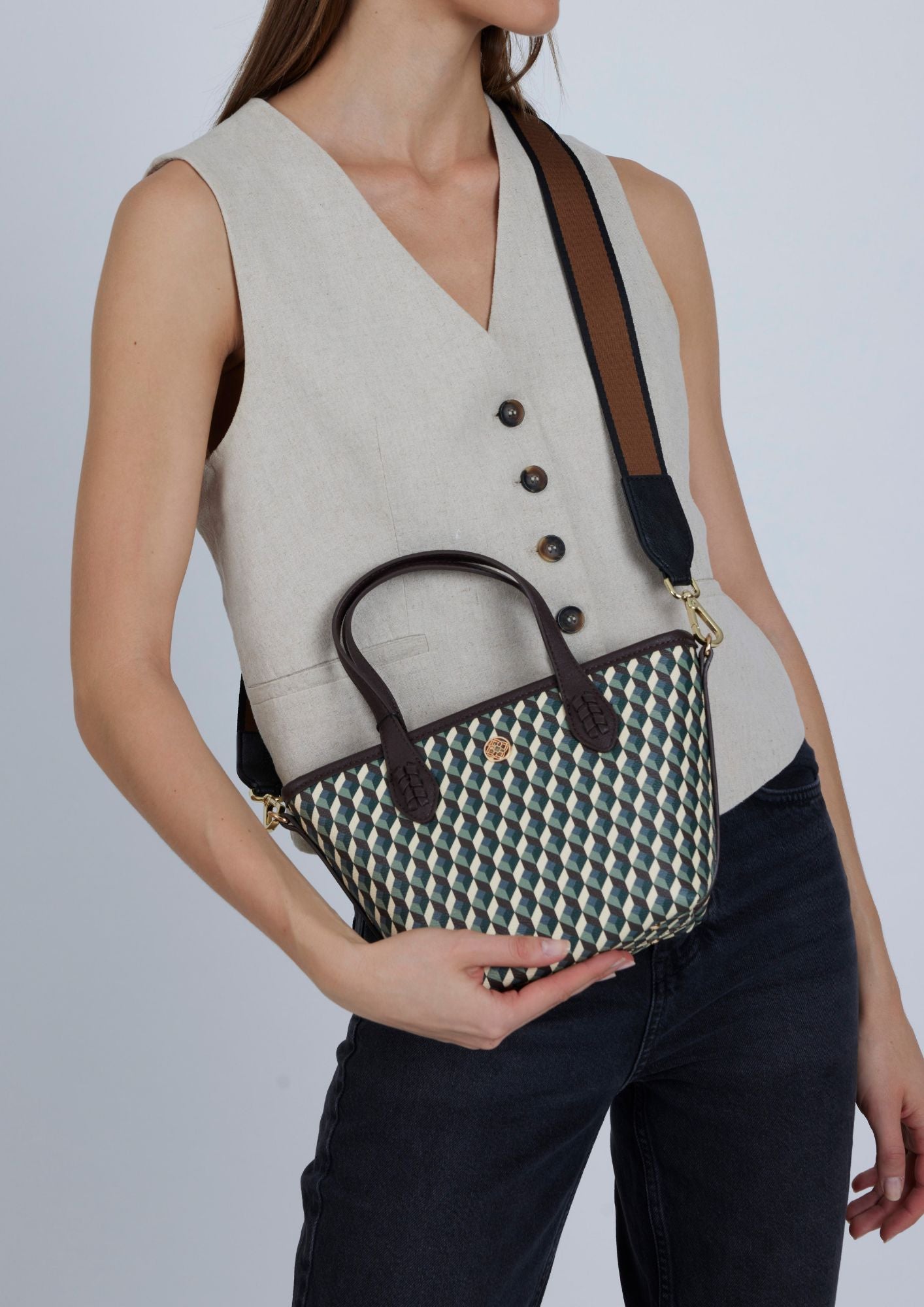 Nouveau sac à bandoulière Tiny avec l'imprimé de la ligne Tiny Born de Lonbali. Il s'agit du plus petit sac de la collection et se caractérise par le fait qu'il s'agit de la version mini de l'emblématique Tiny Bag. Born.