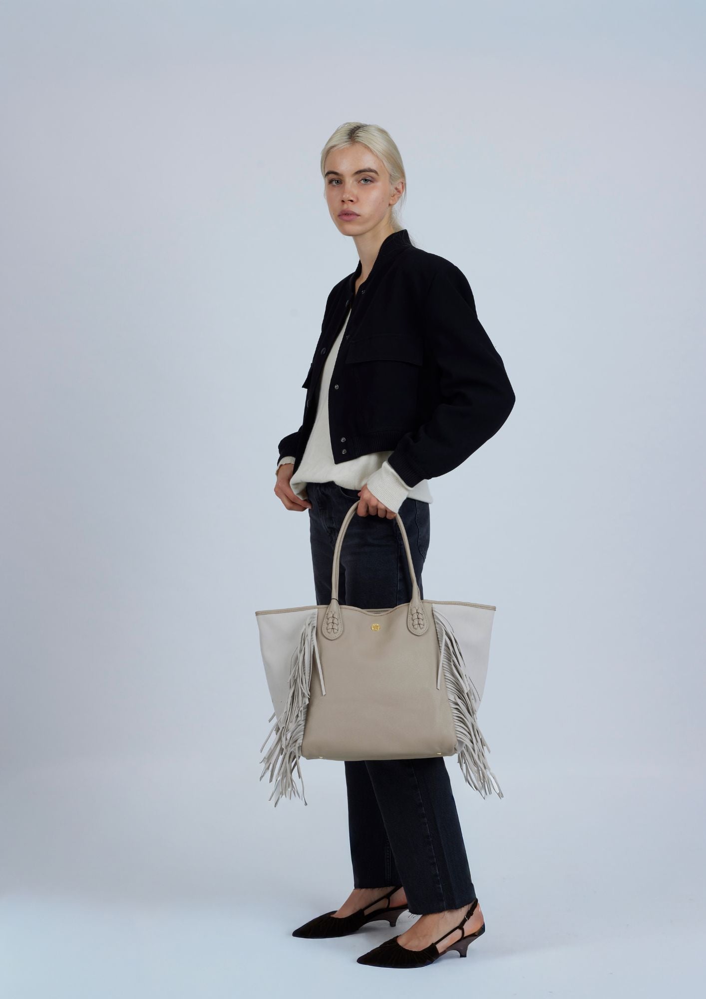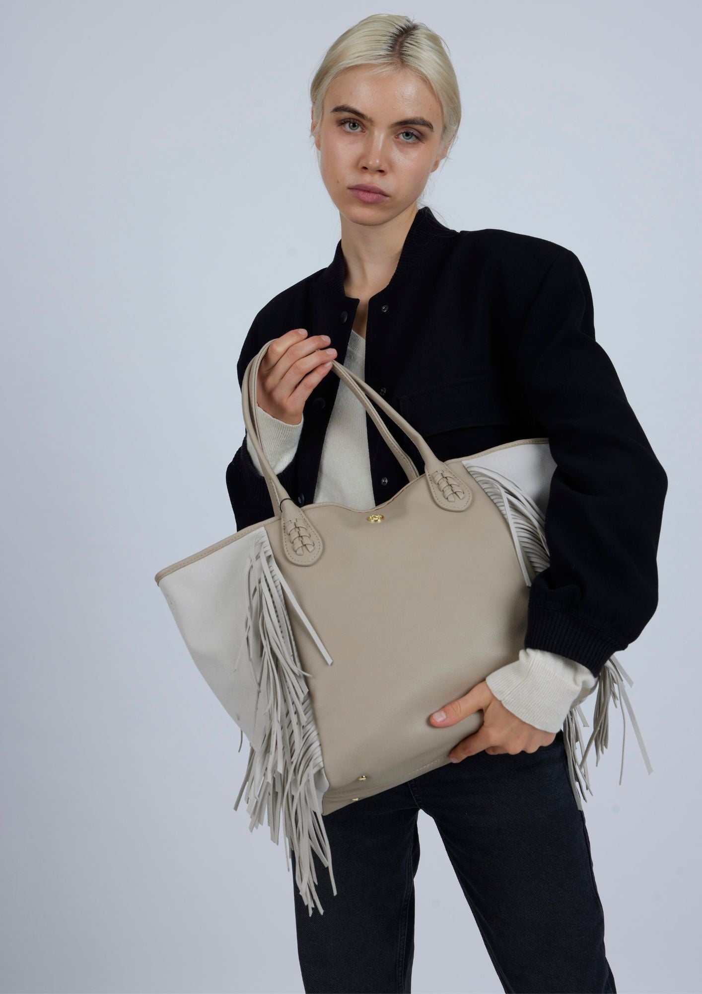 Bonnie Conscious Le nouveau sac deLonbaliLe nouveau sac, avec des franges des deux côtés, ajoute une touche décontractée à ce sac qui combine deux textures. La frange centrale est fabriquée à partir de matériaux recyclés. Il est doté d'une bandoulière amovible avec détail tressé, qui permet de le porter confortablement sur le corps. Personnalisé avec le logo de la marque en nickel. Personnalisable uniquement sur la bande centrale. Ce modèle ne comprend pas d'organiseur, rappelez-vous que vous pouvez vous procurer votre organiseur préféré dans la section "Accessoires" du site.
