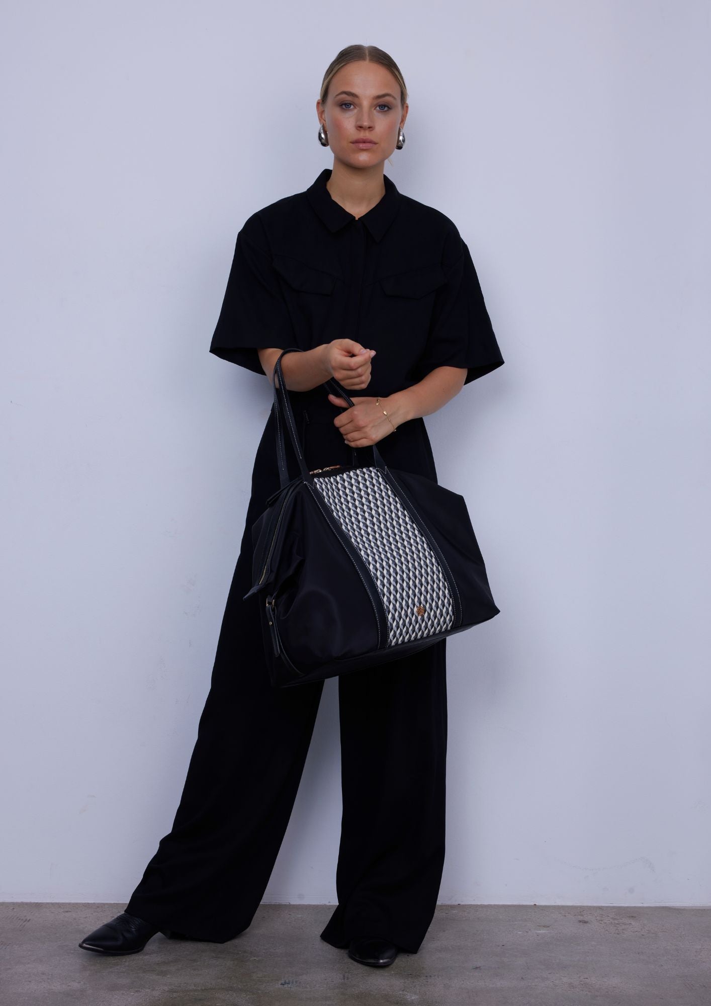 Lite Born B&W Lite Lonbali Le sac Shopper de la collection by se distingue par sa légèreté et son design exclusif, avec l'iconique bande centrale imprimée qui lui confère une touche unique. Born La bande centrale imprimée lui confère une touche unique. Intemporel et polyvalent, ce sac shopper est idéal pour les escapades comme pour un usage quotidien, grâce à sa grande capacité de rangement. Il se porte à l'épaule ou en travers du corps grâce à sa bandoulière réglable.