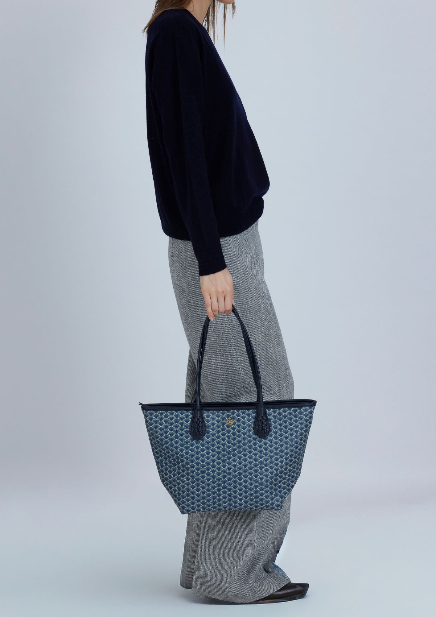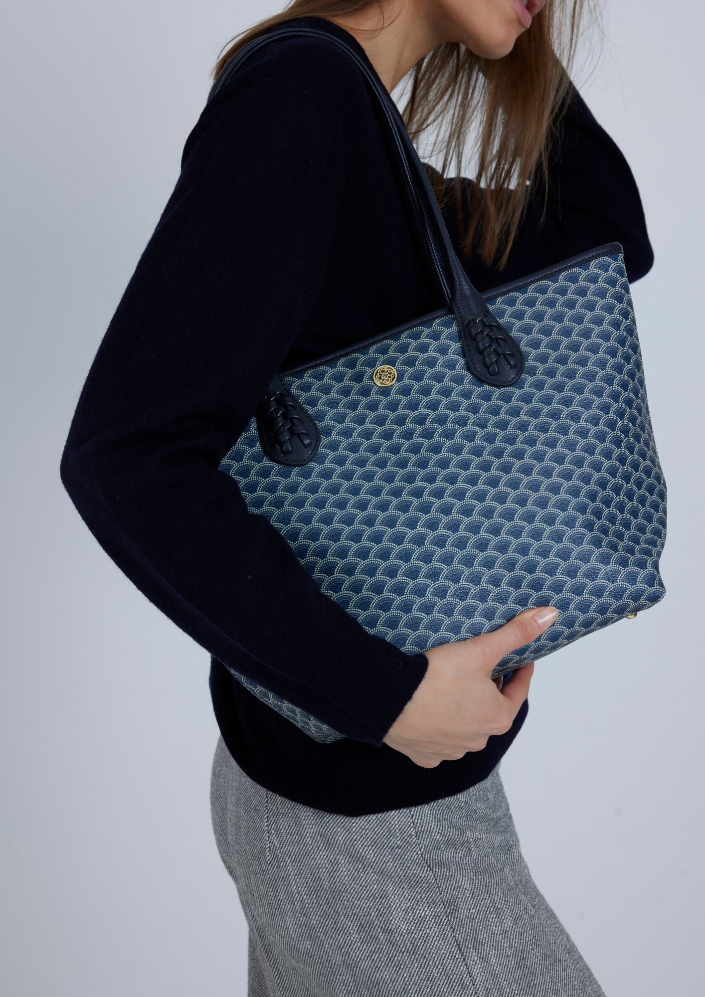 shopping Kubu Le sac imprimé Midi de la ligne de LonbaliKubu est la version moyenne du sac le plus vendu. Il se distingue par sa taille plus petite et sa fermeture à glissière. Il est doublé de polyester assorti à la couleur de la bordure et de la poignée. Il comporte une poche zippée à l'intérieur.