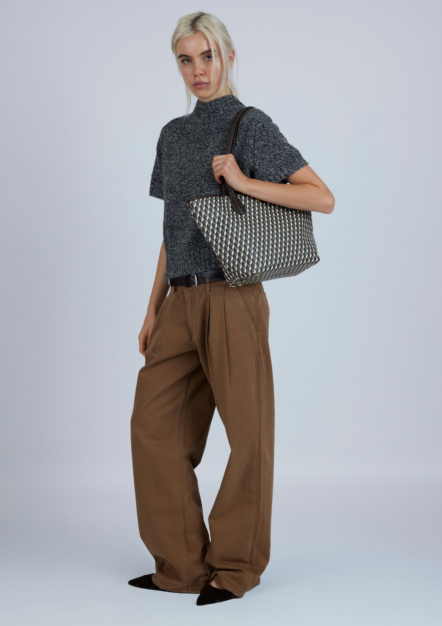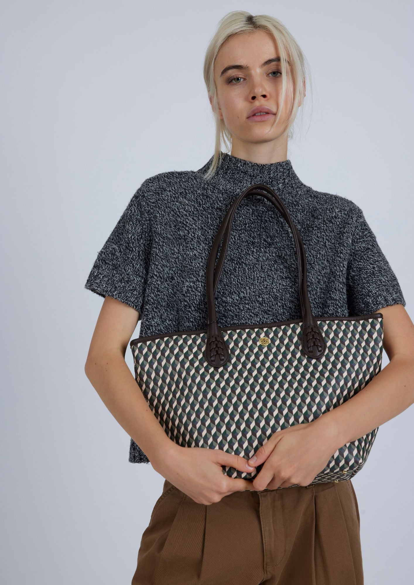shoppingLe sac Midi imprimé de la ligne Bornde Lonbali est la version moyenne du sac le plus vendu de la ligne Born. Il se distingue par sa taille plus petite et sa fermeture à glissière. Il est doublé de polyester assorti à la couleur de la bordure et de la poignée. Il comporte une poche zippée à l'intérieur.