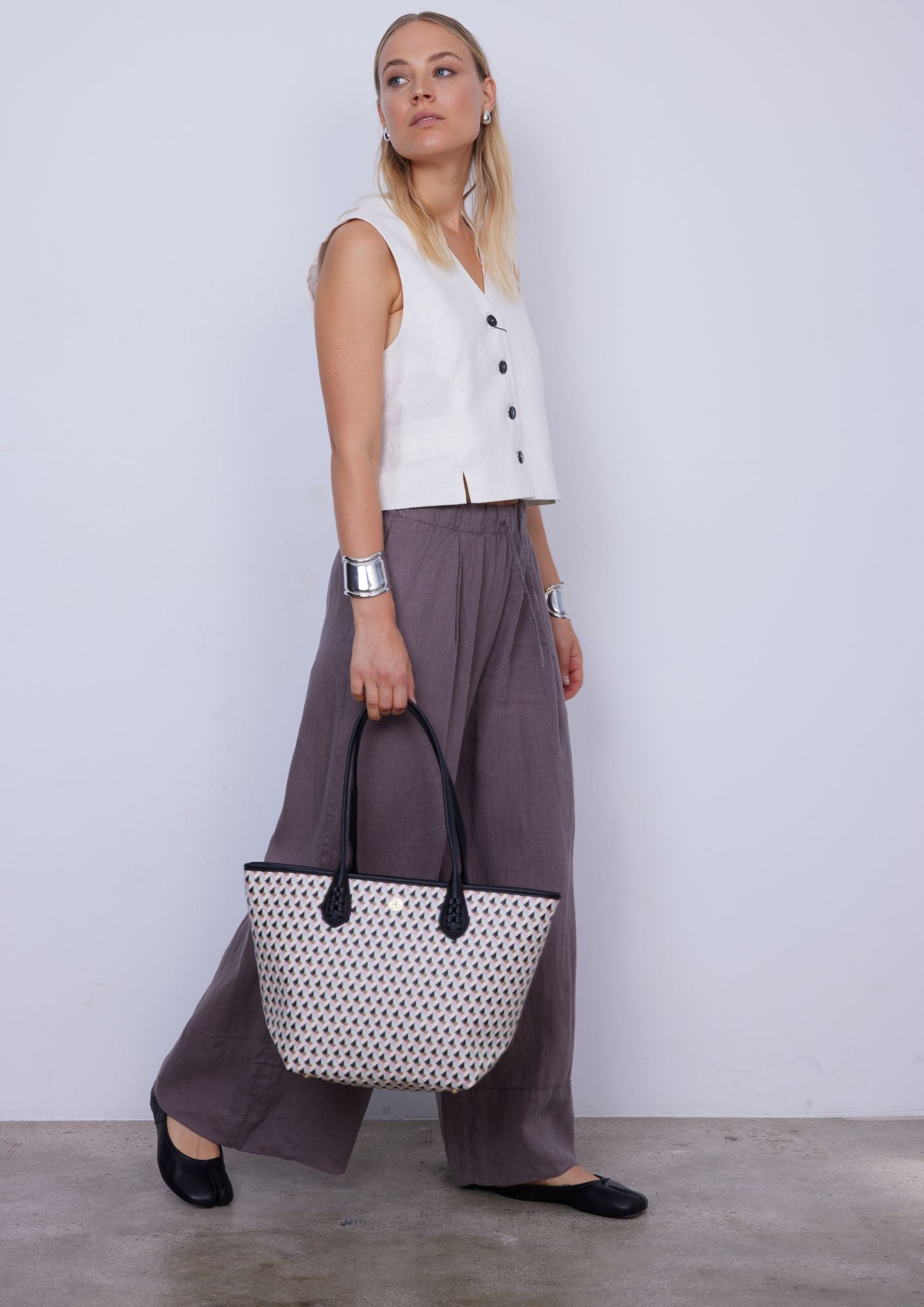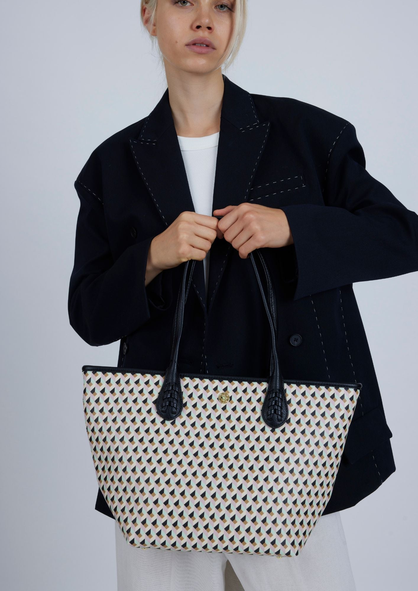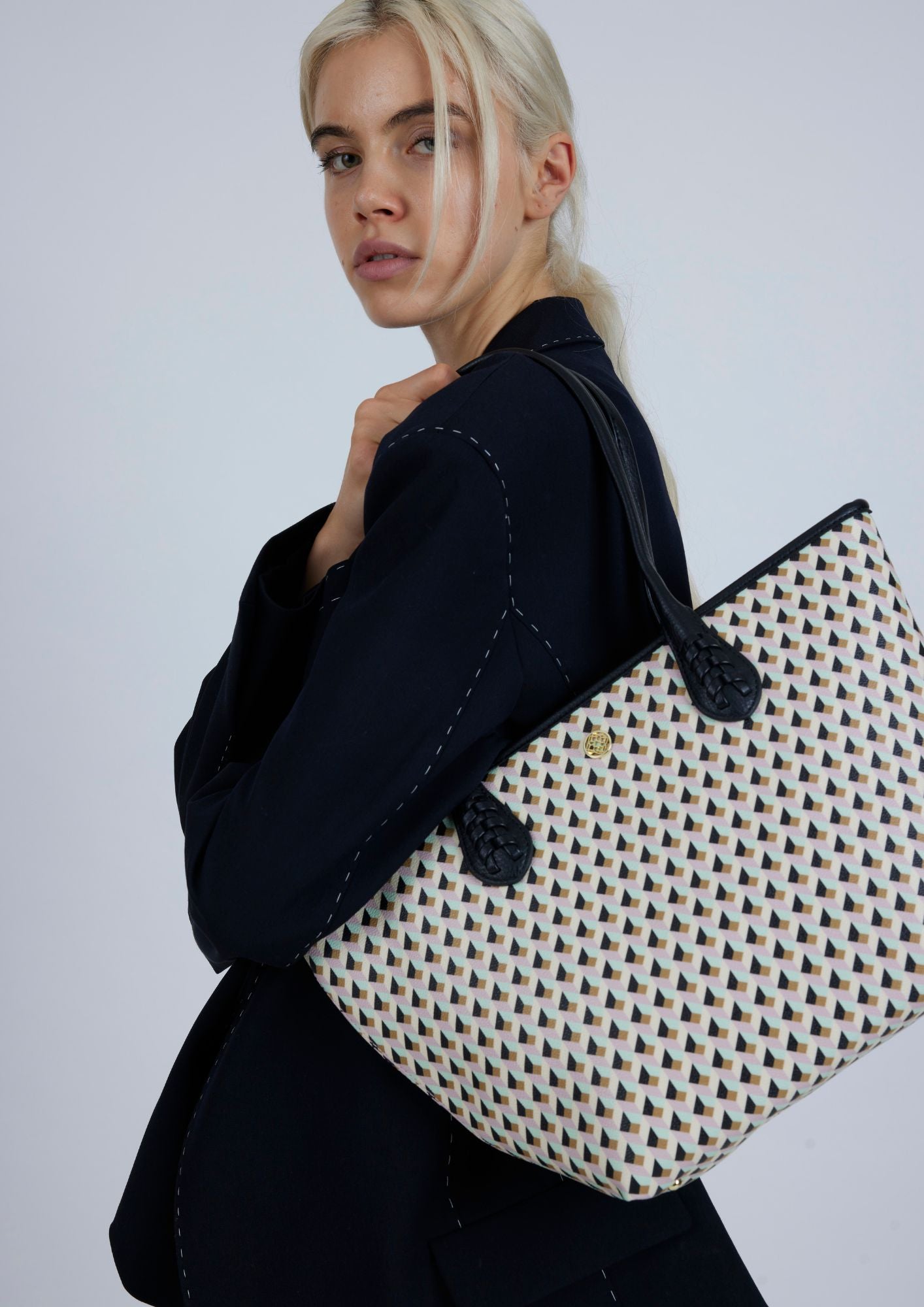 Ce sac pour femme comporte deux œillets permettant d'ajouter une lanière et de le porter confortablement à l'épaule. Personnalisé avec le logo de la marque en nickel.