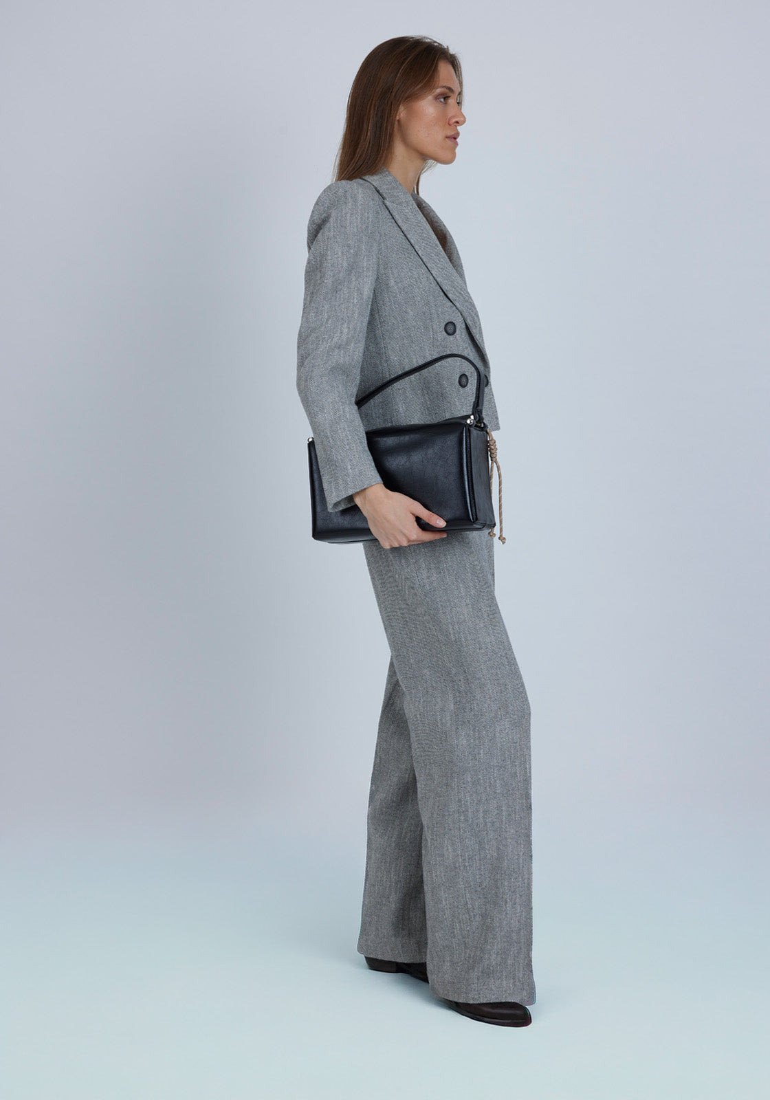 L'intérieur est doublé de tissu doux et dispose d'une fermeture à pression magnétique pour plus de sécurité. Sa structure semi-rigide lui permet de conserver sa forme tout en restant léger et confortable à porter, parfait aussi bien pour un usage quotidien que pour des occasions décontractées.