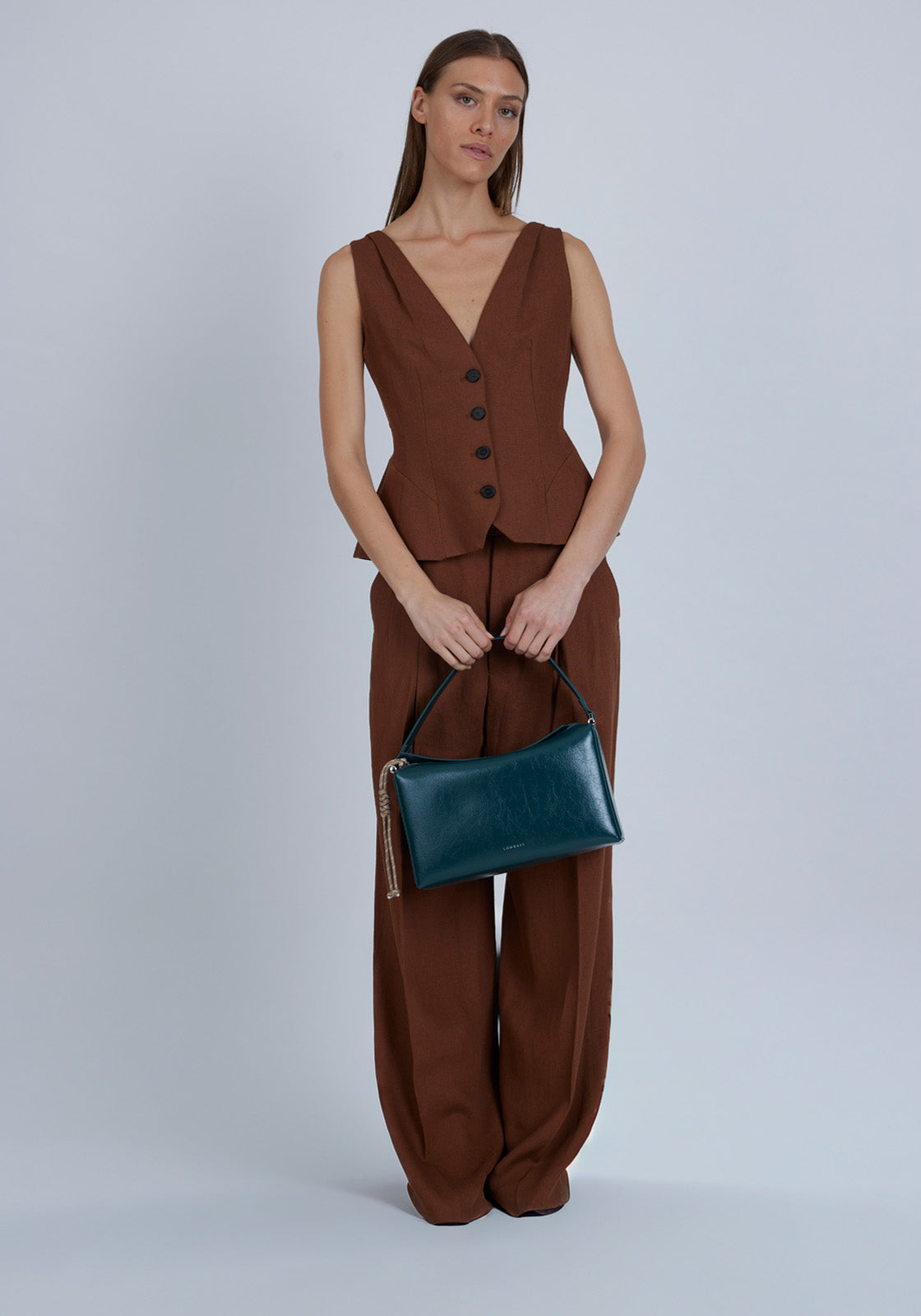 Le sac Chicago Green se distingue par son élégance minimaliste et son style contemporain. Conçu avec une finition verdâtre, il offre une texture douce et un design structuré pour s'adapter à toutes les occasions.