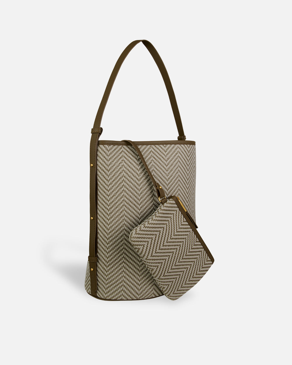 Ce sac seau de Lonbali est idéal pour un usage quotidien. Il présente un design moderne avec une texture tressée dans des tons verts qui s'accordent avec tout. L'intérieur est spacieux, parfait pour transporter vos objets quotidiens. Sa solide poignée réglable permet de le porter confortablement à l'épaule ou à la main, et sa structure conserve sa forme sans être rigide.