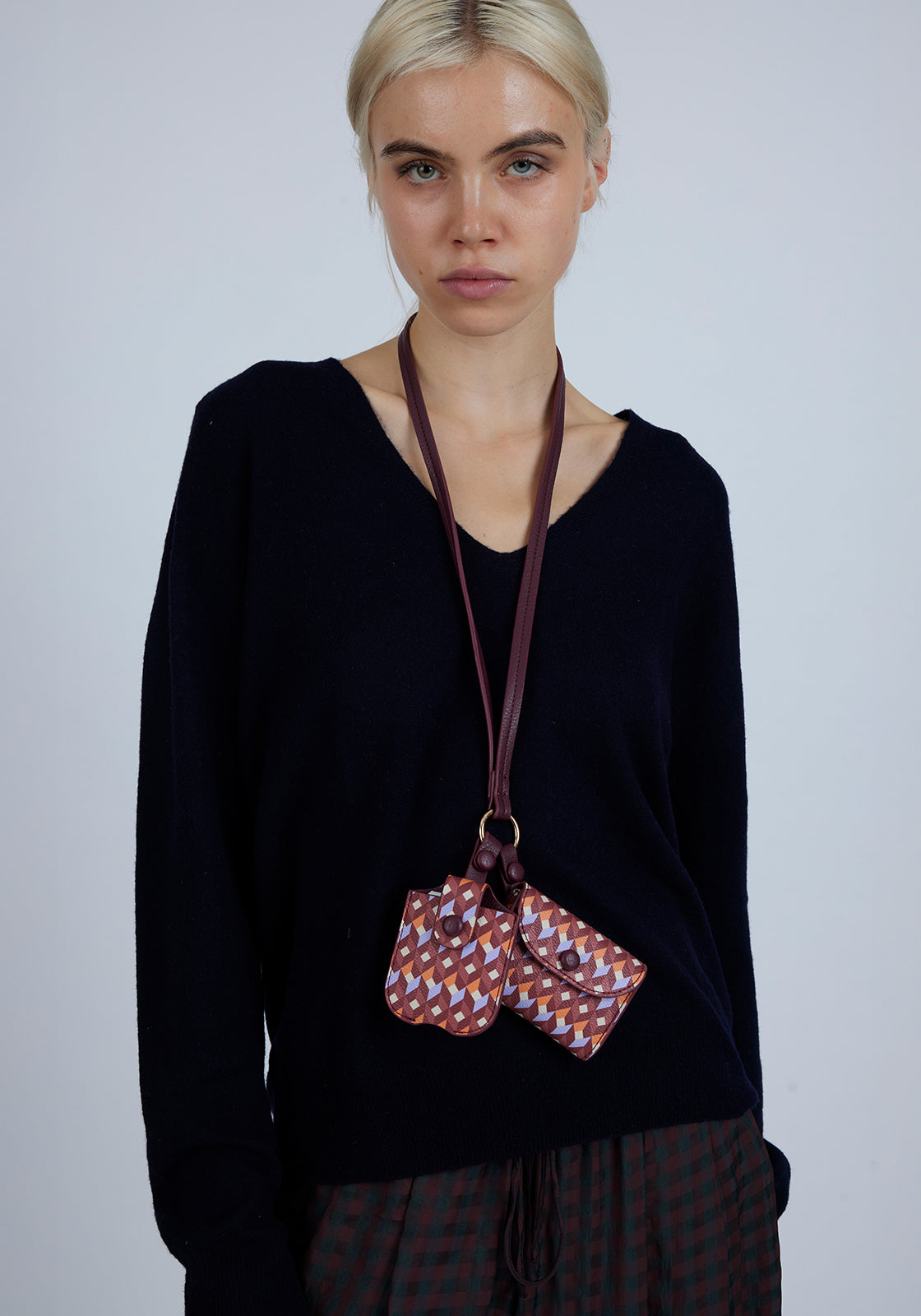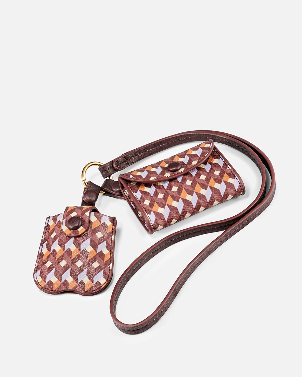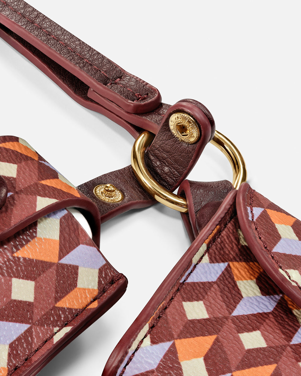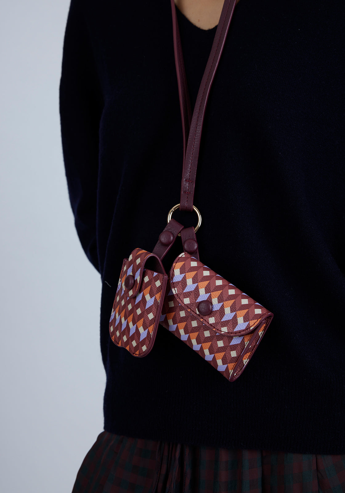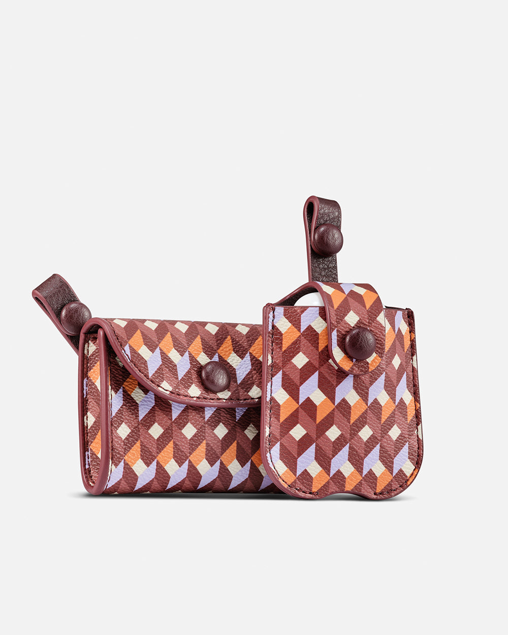 LeMini Duo Case est un ensemble de deux étuis compacts caractérisés par l'imprimé géométrique emblématique Born des tons orange et rouge. Il comprend unétui pour écouteurs avec fermeture à boucle et boucle pour l'accrocher facilement, et un mini étui horizontal parfait pour ranger des pièces de monnaie, des clés ou de petits accessoires.