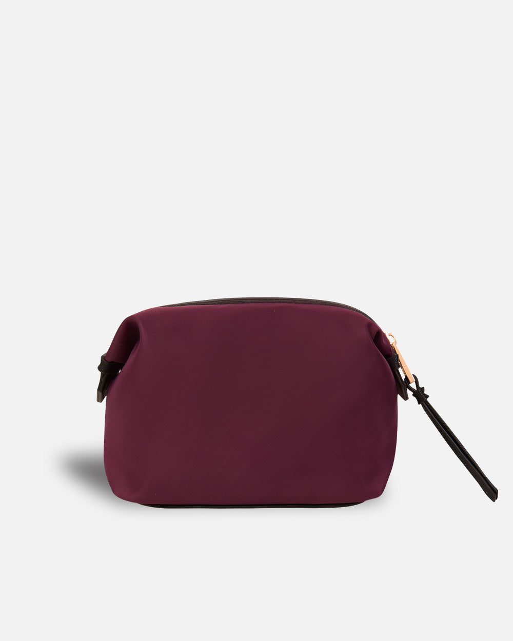 L'intérieur, doublé en polyester de première qualité, est caractérisé par des détails gravés sur le logo.Détails de la trousse de toilette Intérieur lavable en nylon Intérieur personnalisé avec étiquette impriméeComposition de la trousse detoilette Taille : 25 14,5 6 cm (largeur hauteur base) Extérieur : Bande centrale en PVC et polyester recyclé Intérieur : Polyester recycléCouleurs: Cherry